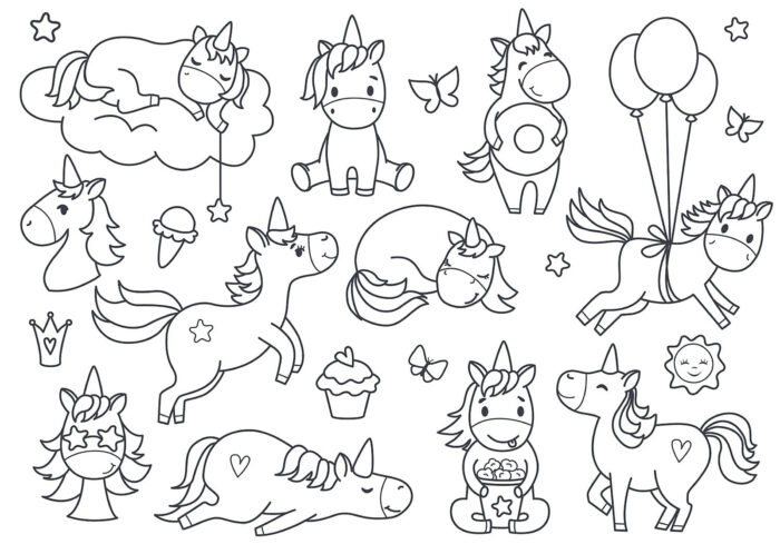 La team Mapiwee vous invite à colorier une multitude de licornes endormies, festives et joyeuses, le tout agrémenté de papillons, de gourmandises et de petites étoiles. Ce coloriage est une véritable invitation au rêve, parfait pour stimuler l’imaginaire des enfants tout en leur offrant un moment de calme et de créativité.