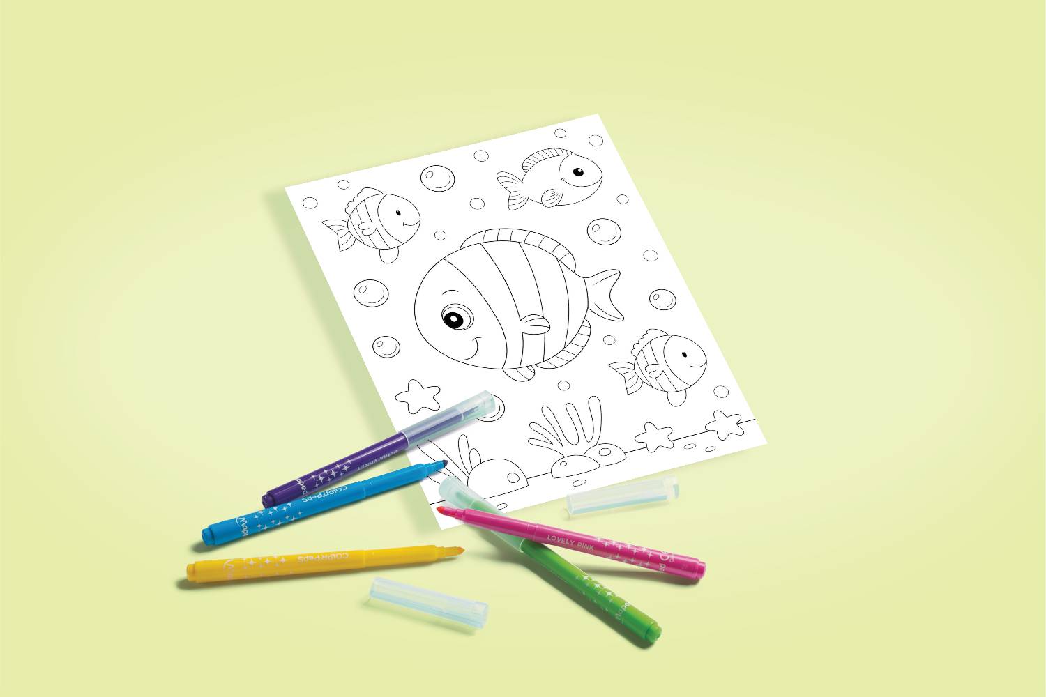 Dans ce morceau d’océan, chacun a sa façon de se promener. Le poisson rayé aime filer en avant, le poisson rond préfère prendre son temps, et le tout petit suit les bulles comme si c’étaient des petites lanternes. Les algues dansent au rythme de l’eau et dessinent des chemins à travers lesquels on peut imaginer tout un voyage. Et quand on écoute bien, on dirait presque que la mer raconte un secret : ici, on vit tranquille, on se découvre, on apprend à faire attention aux autres et à ce qui nous entoure. C’est un univers simple, joyeux et rassurant, idéal pour donner envie d’inventer des histoires et de rêver à la vie sous la mer.