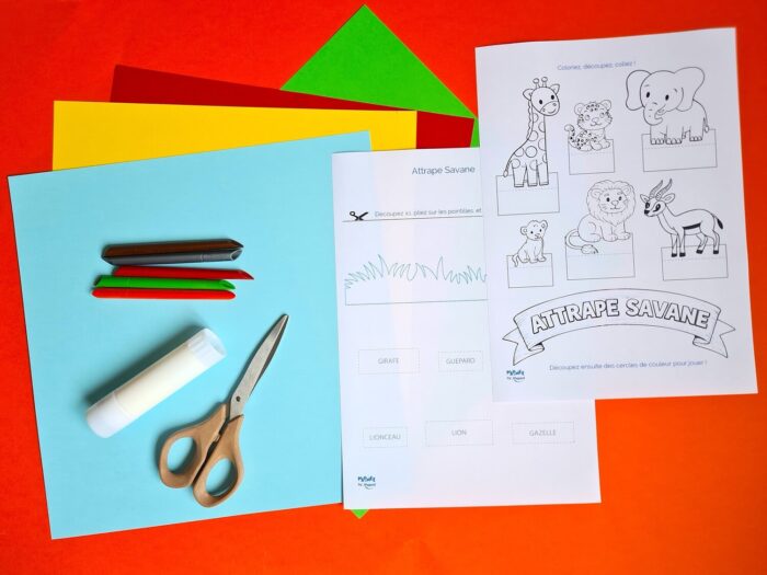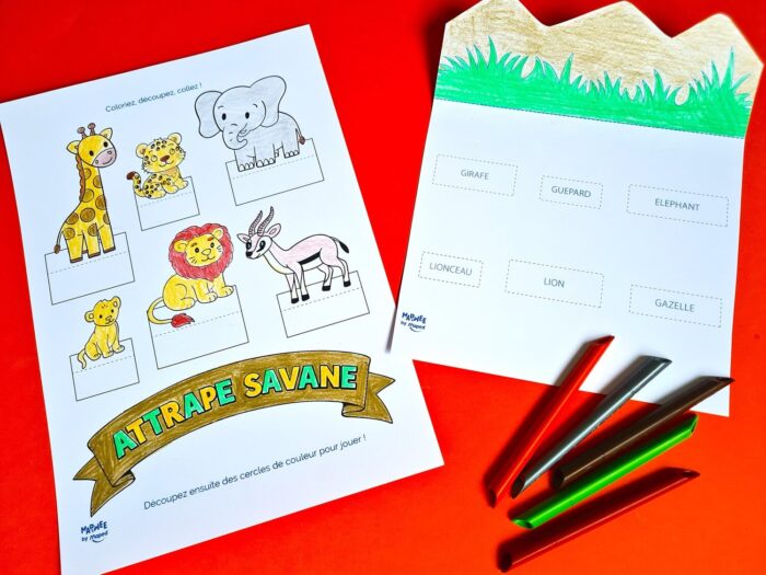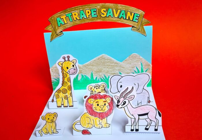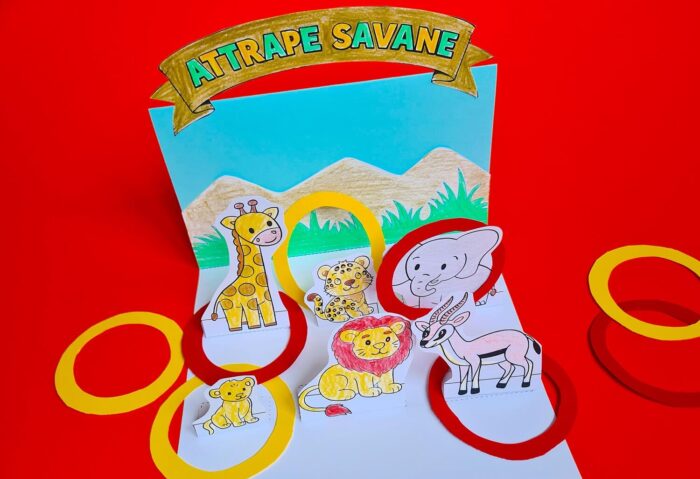 Construisez votre jeu en papier, pensé pour se replier facilement afin de l’emporter partout ou d’animer un anniversaire sur le thème de la savane. Le principe est très simple : lancez vos anneaux en papier et tentez d’attraper un maximum d’animaux.